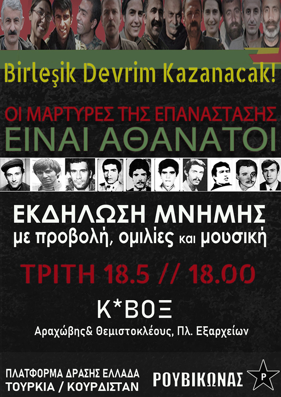 Μέρα μνήμης των μαρτύρων του Μαΐου, Κούρδων και Τούρκων αγωνιστών/ριών που έπεσαν στον αγώνα για την κουρδική απελευθέρωση