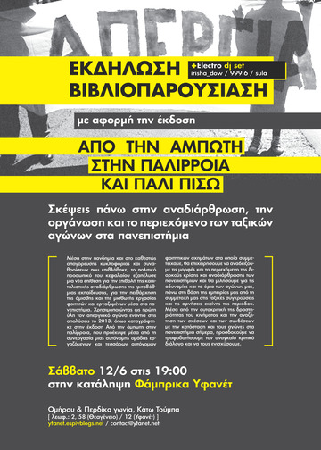 Παρουσίαση-Εκδήλωση : Σκέψεις πάνω στην αναδιάρθρωση, την οργάνωση και το περιεχόμενο των ταξικών αγώνων στα πανεπιστήμια με αφορμή την έκδοση "Από την άμπωτη στην παλίρροια και πάλι πίσω":