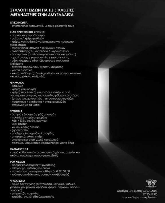 Συλλογή ειδών για τις κρατούμενες στην Αμυγδαλέζα