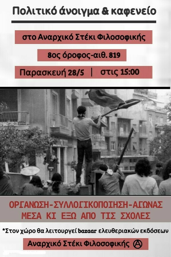 Πολιτικό άνοιγμα, καφενείο και λειτουργία του ελευθεριακού βιβλιοπωλείου του στεκιού.
