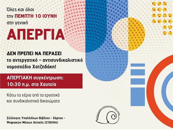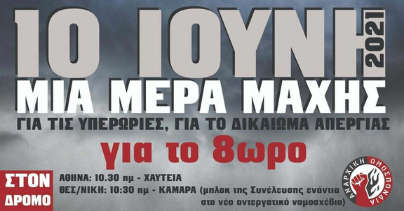 ΚΑΛΕΣΜΑ ΣΤΗΝ ΑΠΕΡΓΙΑ ΤΗΣ 10 ΙΟΥΝΗ ΕΝΑΝΤΙΑ ΣΤΟ ΑΝΤΕΡΓΑΤΙΚΟ ΝΟΜΟΣΧΕΔΙΟ