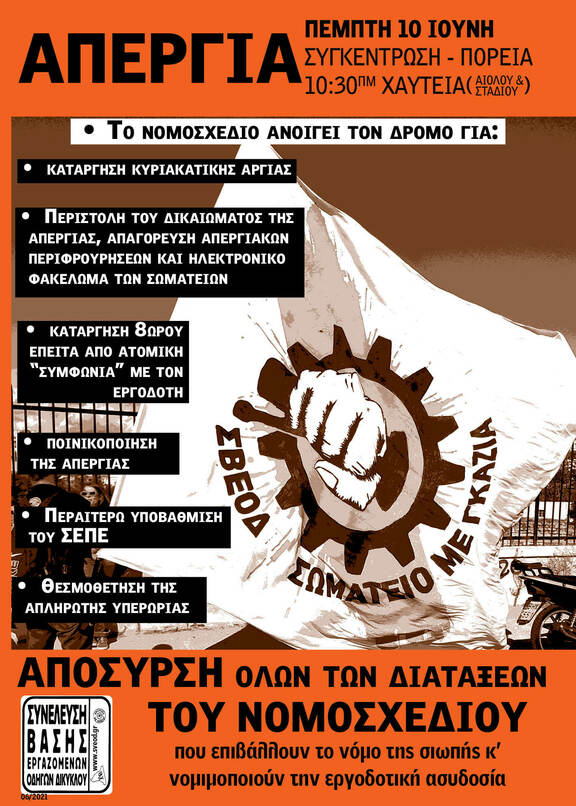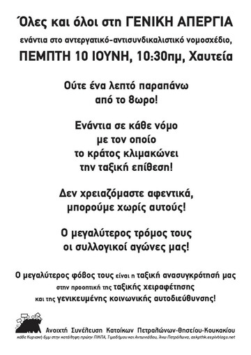 Όλες και όλοι στη γενική απεργία ενάντια στο αντεργατικό-αντισυνδικαλιστικό νομοσχέδιο, Πέμπτη 10 Ιουνίου, 10:30πμ, Χαυτεία