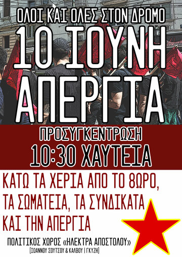 ΑΠΕΡΓΙΑ 10 Ιούνη, Συγκέντρωση - Πορεία 10:30 Χαυτεία
