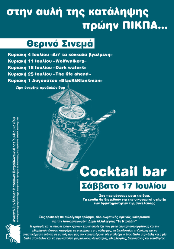 Σας περιμένουμε μετά τις 9μμ. Τα έσοδα θα διατεθούν για την οικονομική στήριξη των δραστηριοτήτων της συνέλευσης.