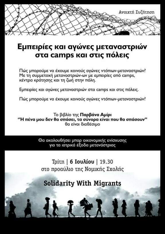 Ανοιχτή συζήτηση "Εμπειρίες και αγώνες μεταναστριών στα camps και στις πόλεις" & bar