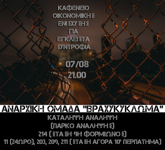 Η εκδήλωση θα γίνει στον εξωτερικό χώρο της κατάληψης.