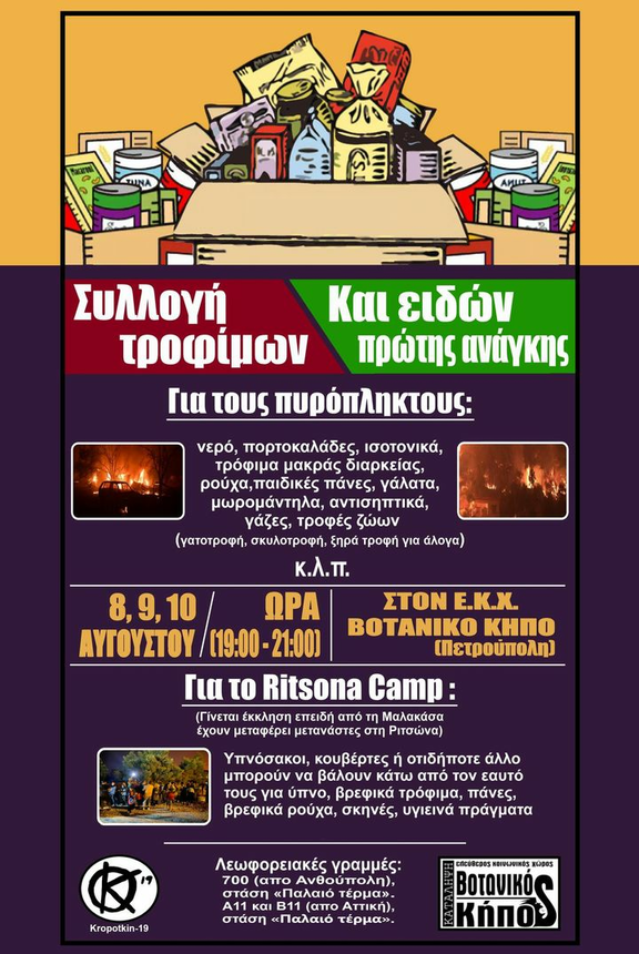 Υπάρχει πρόβλημα και για τους πυρόπληκτους αλλά και για τη Ριτσώνα όπου έχoυν μεταφερθεί όλοι οι μετανάστες από τη Μαλακάσα εκεί και έχει γίνει το αδιαχώρητο. Ας ανταποκριθούμε όπως πάντα. Ευχαριστούμε