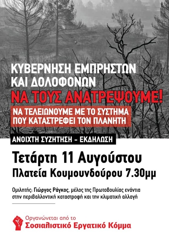 Ανοιχτή συζήτηση-εκδήλωση: Κυβέρνηση εμπρηστών και δολοφόνων
