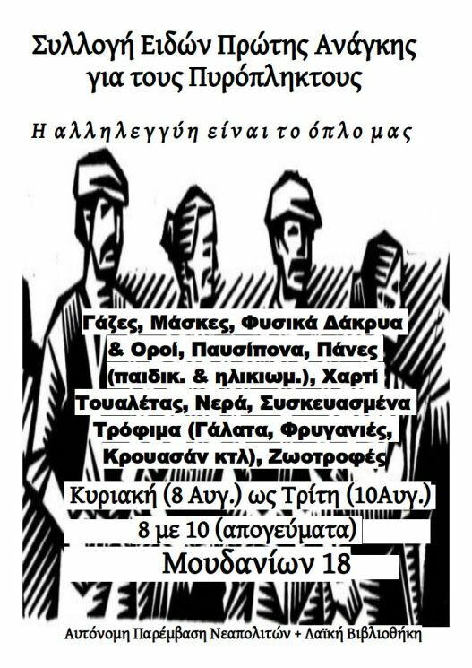 Συλλογή Ειδών Πρώτης Ανάγκης για τους Πυρόπληκτους (Κυρ. 8 Αυγ. - Τρίτη 10 Αυγ.) - 8 με 10 (απογεύματα)