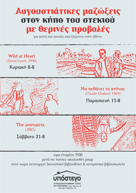 Όπως κάθε Αύγουστο έτσι και φέτος το Υπόστεγο ανοίγει τον κήπο του και γίνεται σημείο συνάντησης για όσες και όσους ξεμείναμε στην Αθήνα με προβολές και χαλαρά άφτερ μπαρ.