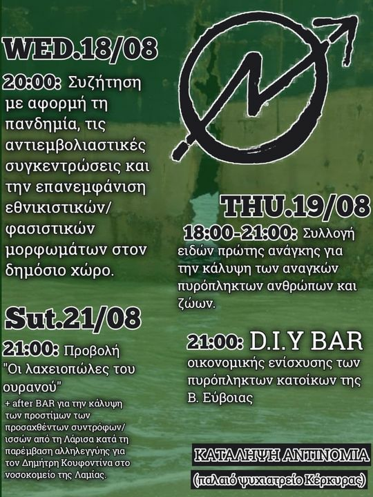 ** Η συνέλευση της κατάληψης βρίσκεται σε επικοινωνία με τα συντρόφια απο την ομάδα Μια παρέα από τα Εξάρχεια η οποία πραγματοποιεί αποστολές και διανομές ειδών ανάγκης στη Β. Εύβοια.