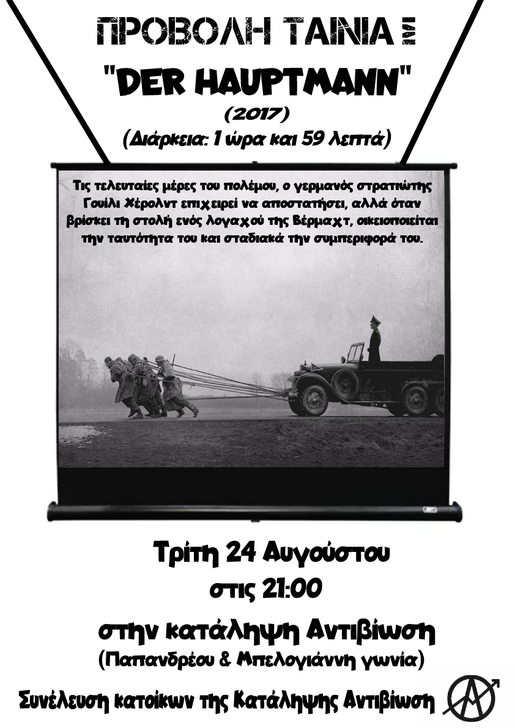 Προβολή της ταινίας "Der hauptmann", την Τρίτη 24 Αυγούστου και ώρα 21:00 στην κατάληψη Αντιβίωση.