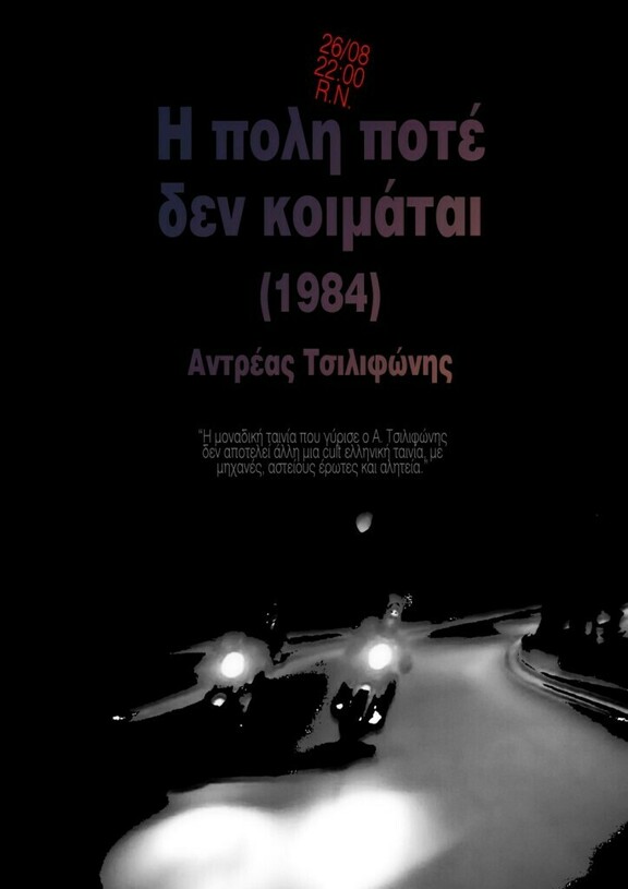22:00 Προβολή ταινίας Η πόλη ποτέ δεν κοιμάται, του Ανδρέα Τσιλιφώνη (1984, 1h 35min)
