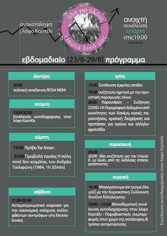 19:00 - 22:00 Συνέλευση αυτοδιαχείρισης στον λόφο Καστέλι