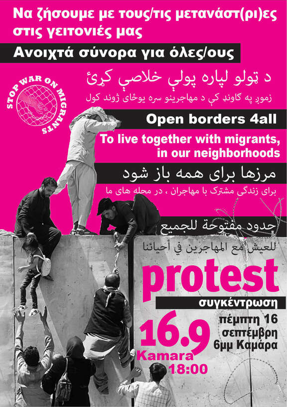 That doesn't come by surprise if we think that the war of the Greek state against migrants keeps on going for decades now. A war that sometimes slips silently behind us while others it's being focused as the main event in the urban public sphere. The last years the Greek state's policies are focused on a constant effort to illegalize and make migrants invisible. Migrants that are not push-backed to Turkey right after they enter Greece are most likely to be stacked in a detention center. The few of them that will be housed inside the cities (probably by some NGO that is responsible for the management of the state's and Europe's programs) will come to face the threat of eviction and a wide exclusion regime from healthcare, education but also from the socialization procedures that are taken for granted by the majority of locals.
