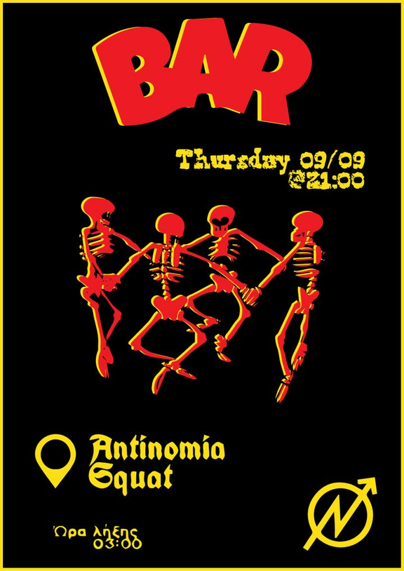 Μπαρ οικονομικής ενίσχυσης της κατάληψης Αντινομία. Πέμπτη 9 Σεπτεμβρίου, από τις 21:00 έως τις 03:00.