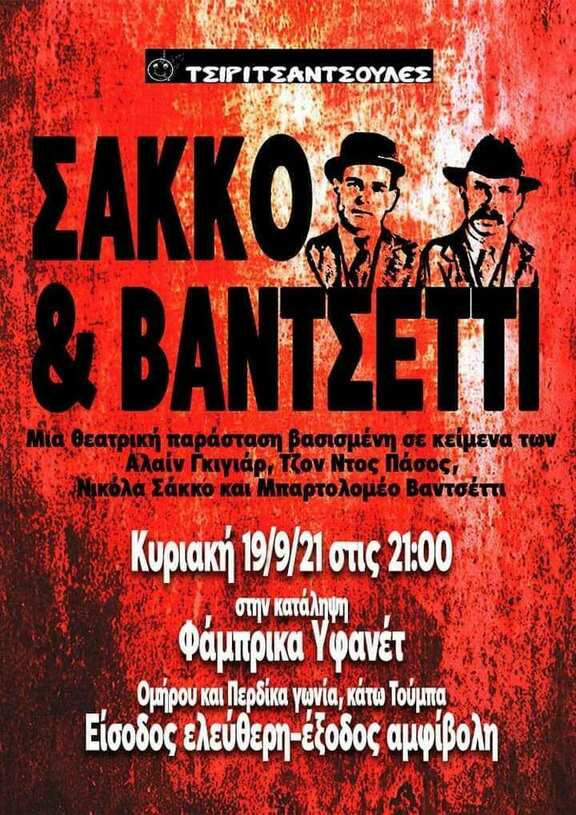 Θεατρική παράσταση: Σάκκο και Βανέττι από τις Τσιριτσάντσουλες