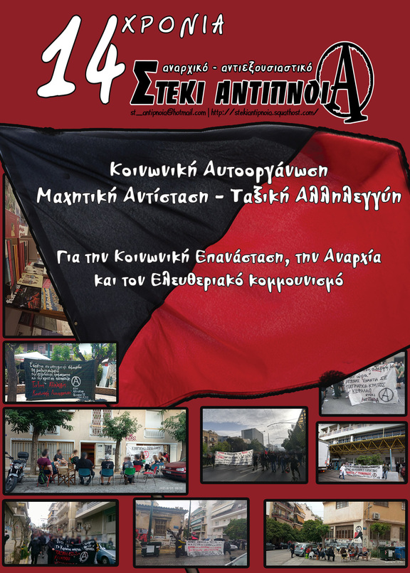«14 χρόνια αναρχικό-αντιεξουσιαστικό στέκι Αντίπνοια»: Οι αυτοοργανωμένοι χώροι αγώνα ως αναπόσπαστο κομμάτι των κοινωνικών και ταξικών αντιστάσεων, του αγώνα ενάντια σε Κράτος και Κεφάλαιο".