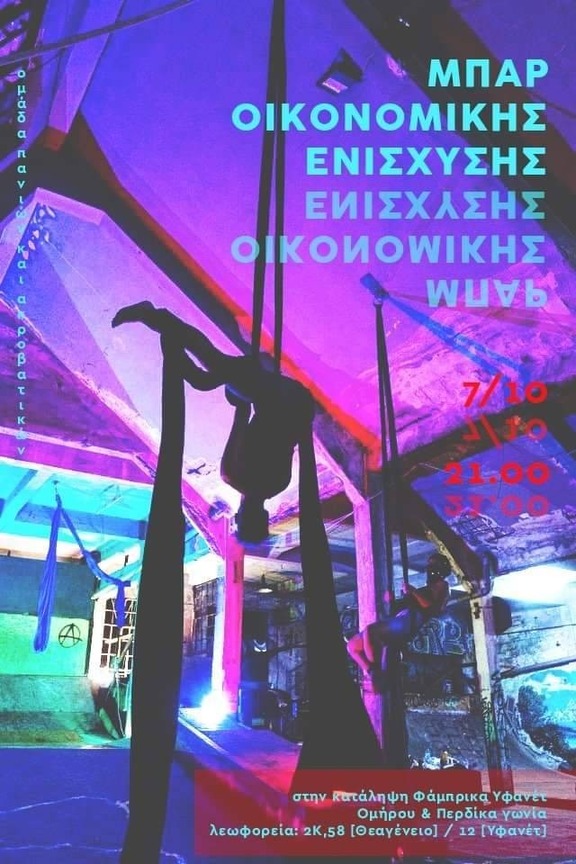 Μπαρ οικονομικής ενίσχυσης της ομάδας πανιών/ακροβατικών. Τα έσοδα θα διατεθούν για τη συντήρηση του χώρου.
