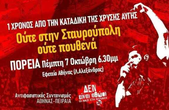 Αντιφασιστική πορεία - απάντηση 1 χρόνο μετά την καταδίκη της Χρυσής Αυγής