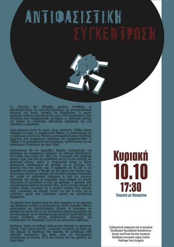 Αντιφασιστική Συγκέντρωση, Κυριακή 10/10 , 17:30 Τσιμισκή με Ναυαρίνου