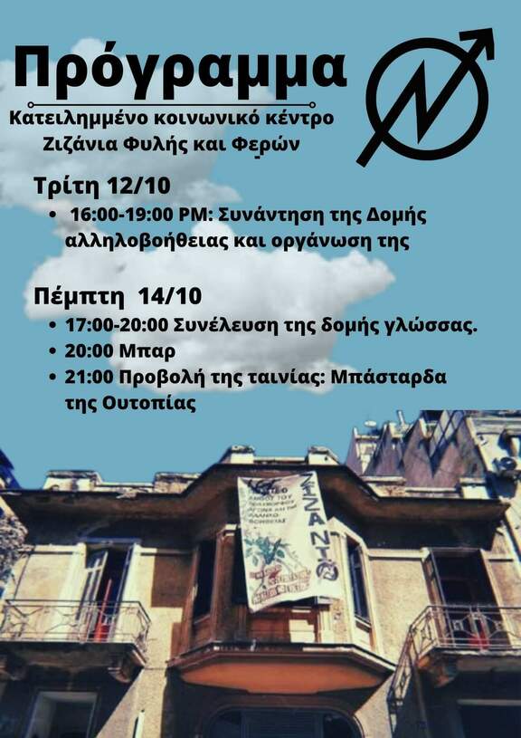 Καλούμε όσα άτομα ενδιαφέρονται να συμμετάσχουν στη δομή αλληλοβοήθειας της κατάληψης σε μια συνάντηση για γνωριμία και συήτηση γύρω από την οργάνωση και τις λειτουργίες της. Η δομή θα έχει σκοπό τη λειτουργία της κουζίνας, της διανομής τροφής και του χαριστικού παζαριού που ήδη υπήρχαν, καθώς και την εξερεύνηση τρόπων κάλυψης και άλλων αναγκών.