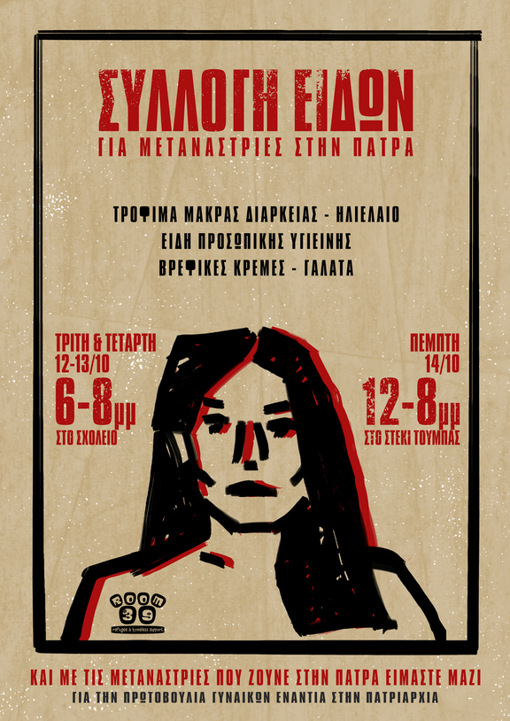 Η συλλογή θα ολοκληρωθεί την Πέμπτη 12:00-20:00 στο στέκι Τούμπας και θα σταλούνε στην Πρωτοβουλία γυναικών ενάντια στην πατριαρχία στην Πάτρα.