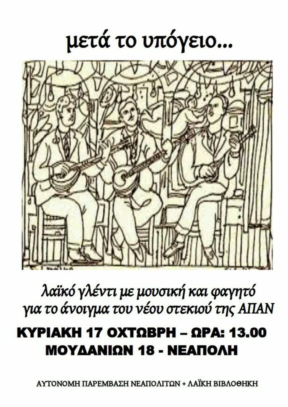 Λαϊκό γλέντι με ζωντανή μουσική & φαγητό για το άνοιγμα του νέου στεκιού της ΑΠΑΝ & της Λαϊκής Βιβλιοθήκης.