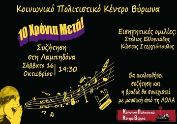 Συζήτηση + Μουσική βραδιά για τα 10 χρόνια Κοινωνικό Πολιτιστικό Κέντρο Βύρωνα