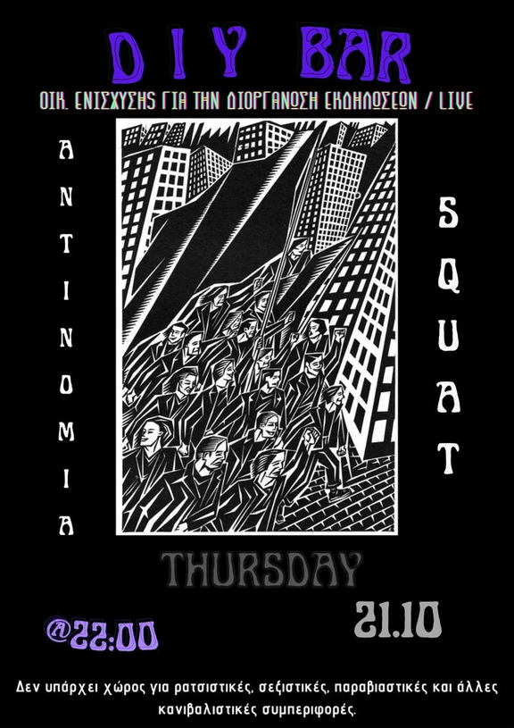 DIY Bar οικονομικής ενίσχυσης για την διοργάνωση εκδηλώσεων / live, στην κατάληψη Αντινομία.(παλιό ψυχιατρείο)