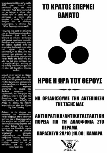 Το κράτος δολοφονεί! Να μη μείνουμε αμέτοχοι! Καμία κρατική δολοφονία να μη μείνει αναπάντητη!