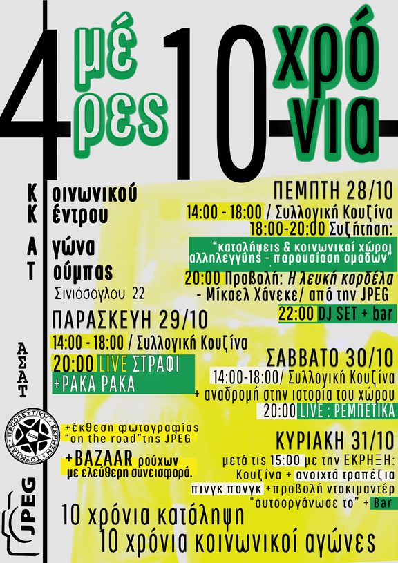 Σας περιμένουμε στο 4ήμερο εκδηλώσεων για τα 10 χρόνια κατάληψης, 10 χρόνια αγώνα