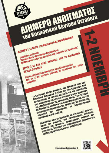 ΔΕΥΤΕΡΑ 1/11 18:00 στο Κοινωνικό Κέντρο Ovradera