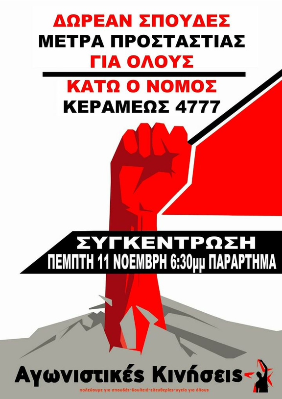 ΠΑΤΡΑ | Όλοι στην διαδήλωση ενάντια στους νόμους Κεραμέως την Πέμπτη 11/11, στις 6:30μμ στο Παράρτημα
