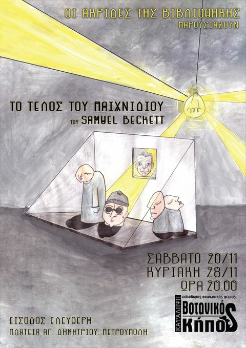 Οι ακρίδες της βιβλιοθήκης παρουσιάζουν το τέλος του παιχνιδιού, έργο του Ιρλανδού λογοτέχνη Samuel Beckett.