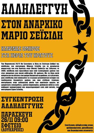 Συγκέντρωση αλληλεγγύης στον Μ. Σεϊσίδη, Παρασκευή 26/11, Εφετείο Αθηνών