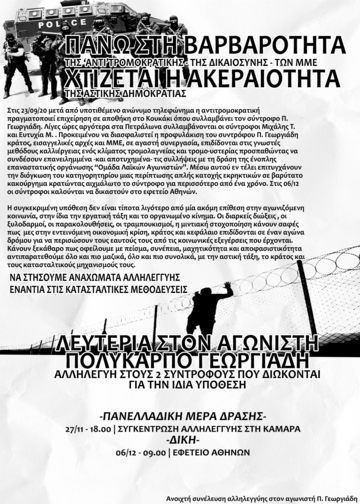 Συγκέντρωση αλληλεγγύης: 27/11 στις 18:00 στην καμάρα