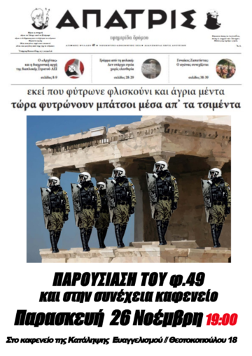 της εφημερίδας δρόμου Άπατρις. Αυτή τη Παρασκευή