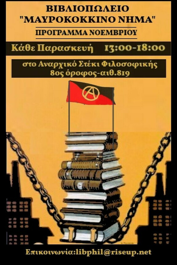 Λειτουργία Βιβλιοπωλείου Μαυροκόκκινου Νήματος για τον μήνα Νοέμβρη