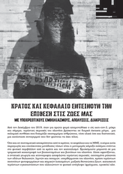 Ως κεντρική αιχμή, εμφανίζεται, η δημιουργία νέων τομέων επενδύσεων και τεχνολογικής ανάπτυξης, με σκοπό την δημιουργία ενός νέου κύκλου αύξησης της κερδοφορίας. Υπό αυτή την σκιά, η ταχεία εξάπλωση της covid-19 και η συνεπακόλουθη υγειονομική κρίση δεν θα μπορούσε να μείνει ανεκμετάλλευτη από τα αφεντικά. Εξάλλου, η όποια καπιταλιστική κρίση, αποτελεί διαχρονικά, πρώτης τάξεως ευκαιρία προκειμένου να γίνουν πράξη πλήθος αντικοινωνικών και αντεργατικών μέτρων. Έγκριση μεγάλων έργων υποδομών που καταπατούν και καταστρέφουν τον φυσικό κόσμο, διάλυση δημοσίων δομών πρόνοιας προς όφελος των ιδιωτικών, διάχυση και εγκαθίδρυση του δόγματος "τάξη και ασφάλεια" με την διαρκή ενίσχυση και στρατιωτικοποίηση των σωμάτων καταστολής, ιδιωτικοποίηση των πανεπιστημίων και εισαγωγή μπάτσων/σεκιουριτάδων, είναι μόνο ορισμένα από τα όσα βλέπουμε να συμβαίνουν.