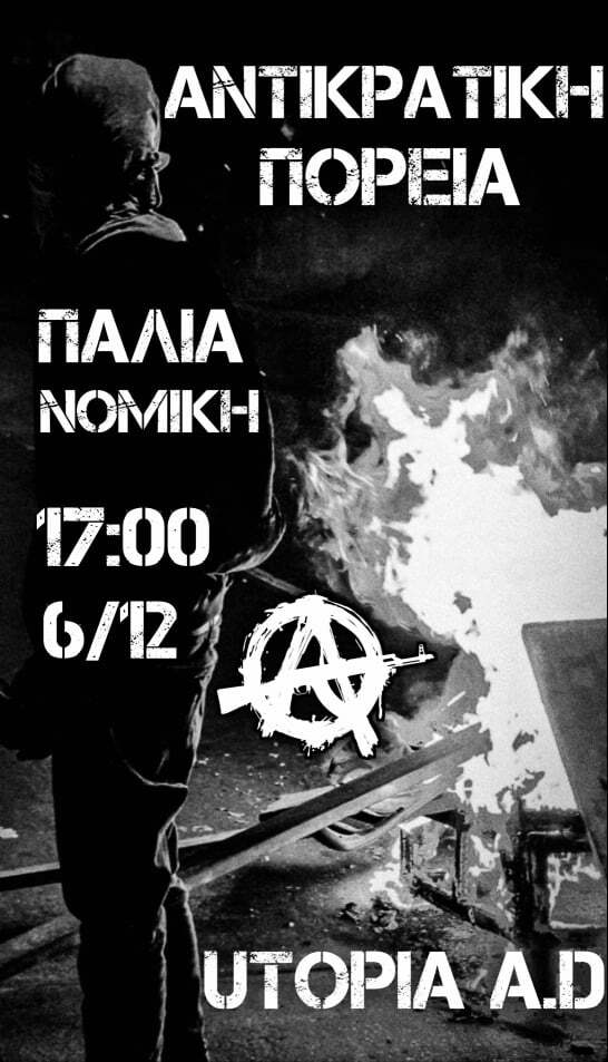 Καλούμε σε αντικρατική πορεία μνήμης της δολοφονίας του Αναρχικού Μαθητή Αλέξανδρου Γρηγορόπουλου από τον μπάτσο κορκονέα στα Εξάρχεια.