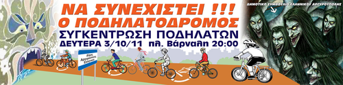 Το cmr του Οκτωβρίου συμμετέχει στη συγκέντρωση των ποδηλατών της Αργυρούπολης στην πλατεία Βάρναλη επί της οδού Μ. Γερουλάνου, στο σημείο όπου και σταματάει με απόφαση του ΔΣ το έργο του ποδηλατόδρομου που ξεκίνησε πέρυσι και έχει ολοκληρωθεί κατά το ήμισυ σε ότι αφορά το μήκος, χωρίς διαγράμμιση και σήμανση.