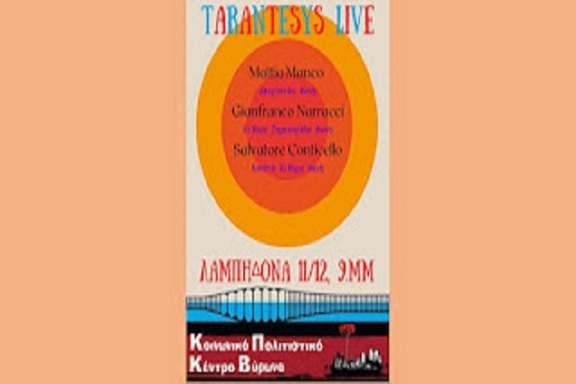 Λίγα λόγια για τους Τarantesys: Αυτοί οι μουσικοί έρχονται από την κάτω Ιταλία και από την Ελλάδα του Σαλέντο (Grecìa Salentina) της Απουλίας, γλωσσική νησίδα όπου ακόμα σήμερα ομιλείται μία αρχαία διάλεκτος ελληνικής προέλευσης, το Γκρίκο (Grico). Προτείνουν παραδοσιακά τραγούδια της Κάτω Ιταλίας και δικές τους συνθέσεις που δημιουργήθηκαν κυρίως για να δώσουν ζωή σε μία γλώσσα η οποία σχεδόν σβήνει και δεν είναι πλέον μια γλώσσα για επικοινωνία. Ταραντέλλες συναντάμε πολλές όπως ταραντέλλα από το Γκαργκάνο (Tarantella del Gargano), από την Καλαβρία (Tarantella Calabrese), την Νάπολη (Tammurriata , την Σικελία (Tarantella Siciliana), το Salento (Tarantella Pizzica). Η κάθε μία έχει τον ιδιαίτερο ρυθμό και χορό της.