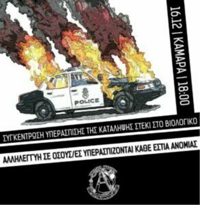 Πορεία Υπεράσπισης του Ασύλου & της κατάληψης Στέκι στο Βιολογικό Πέμπτη 16/12, 18.00 στην Καμάρα