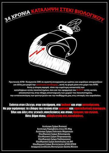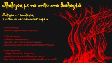 Το κράτος μετά από μια σύντομη ανάπαυλα, επιστρέφει έτοιμο να εκπληρώσει την υπόσχεσή του, να εκκενώσει τους κατειλημμένους χώρους εντός και εκτός του πανεπιστημίου να συνθλίψει τα σημεία συνάντησης και πολιτικής ζύμωσης, τον απελευθερωμένο χρόνο μας, τους χώρους που διασκεδάζουμε, μιλάμε και εκφραζόμαστε ελεύθερα, μακριά από τις εμπορικές τους συναλλαγές, χωρίς μπράβους αφεντικά και απλήρωτες εργαζόμενες, μακριά από τον διάχυτο σεξισμό και ρατσισμό της ελληνικής κοινωνίας. Σε συνεργασία με τις ενδοπανεπιστημιακές αρχές, κοσμητείες και εργολαβίες, η καταστολή έχει στρέψει το βλέμμα της στο βιολογικό.