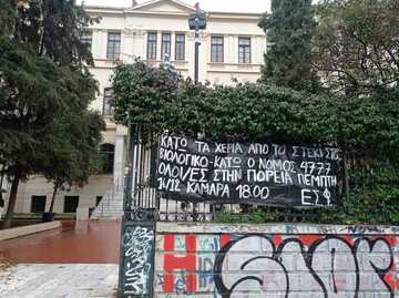 This overall activity of the space stands as an obstacle at the dominant normality of the doctrine "peace-order-security" and that disturbs the state's apparatus which launches an all-out attack. Evictions of self-organised spaces and squats were happening since forever within the history of the anarchist and radical movements, therefore in the last period we recognise an escalation in the effort to repress the voice of encouragement of the resistance and the mobilisation on the side of the democratic government of Mitsotakis. With the tools of criminalizing and targeting the resisting spaces and individuals, attacks directly the structures of the university's space in order to gain the absolute control and to achieve its plans of gentrification and the broader social control. From the squats evictions of the university's property, Terra Incognita, Rosa Nera, Vankuver Apartman, the self-organised space of A.S.O.E.E, the raids in F.E.P.A and the extensive damages on the squatted political spaces, the future hiring of "special" security guards, the placement of the drug mafias inside the universities, until the recent parody of DNA mixture and the prosecution of the 14 militants from the occupied Rectory of NTUA in Athens.