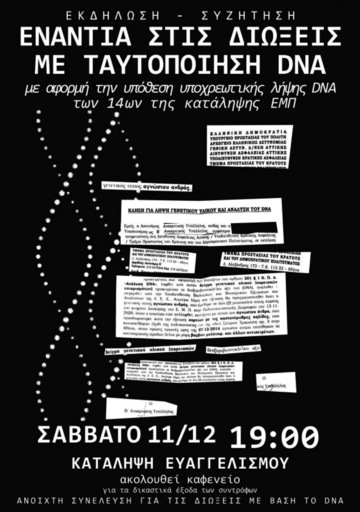 Εκδήλωση – Συζήτηση: Ενάντια στις διώξεις με ταυτόποίηση DNA