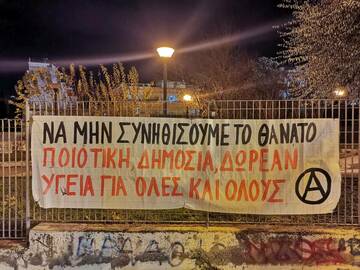 Να στηρίξουμε τοπικούς αγώνες, όπως είναι σήμερα αυτός για την επαναλειτουργία του Λοιμωδών, εξοπλισμένου και στελεχωμένου, και αύριο γιατί όχι και του Παναγία ή του πρώην 424, και να τους μπολιάσουμε με τις ιδέες της οριζοντιότητας και της αντιθεσμικότητας. Να απαιτήσουμε την πραγματική επίταξη των ιδιωτικών ΜΕΘ και κλινών, την ένταξη του 424 στις γενικές εφημερίες, την ενίσχυση του συστήματος υγείας με μόνιμες προσλήψεις υγειονομικών και την πραγματοποίηση όλων των εγχειρήσεων, θεραπειών και τακτικών ιατρείων που έχουν διακοπεί.