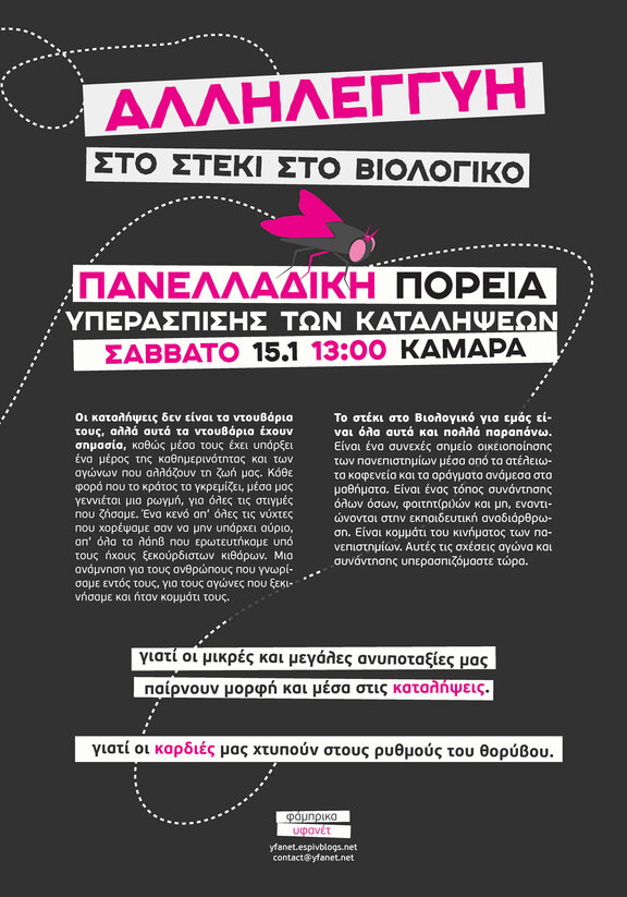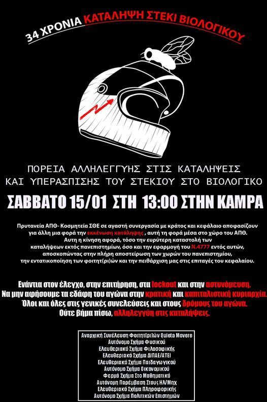 και στην πορεία υπεράσπισης των καταλήψεων και του Στεκιού στο Βιολογικό το Σάββατο 15/01 στη 13:00 (Καμάρα)