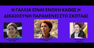 Με το σύνθημα «Η Γαλλία είναι ένοχη καθώς η δικαιοσύνη παραμένει στο σκοτάδι», θα είμαστε στους δρόμους του Παρισιού και άλλων περιοχών στις 5 και 8 Ιανουαρίου για να φωνάξουμε ότι «είναι ώρα να οδηγηθούν οι δράστες στη δικαιοσύνη». Το κάλεσμα μας απευθύνεται σε όλες τις γυναίκες! Το κάλεσμα μας απευθύνεται στον κουρδικό λαό! Το κάλεσμά μας απευθύνεται στους δημοκρατικούς ανθρώπους, στις αριστερές και σοσιαλιστικές οργανώσεις.Σε όλα όσα θέλουν να φωνάξουν ενάντια στα ειδεχθή εγκλήματα του τουρκικού κράτους! Θέλουμε δικαιοσύνη για τη Sara, την Rojbin και την Ronahi! Θέλουμε να δικαστούν οι δράστες των εγκλημάτων κατά της ανθρωπότητας! Ας κάνουμε το 2022, έτος πρόκλησης και επιτυχίας ενάντια στο φασισμό και πατριαρχία και να οδηγηθούν στη δικαιοσύνη οι δράστες του βιασμού και της γενοκτονίας! Με τη σταθερή πεποίθηση ότι ο φασισμός θα ξεπεραστεί μέσω της ενότητας των γυναικείων και των λαϊκών κινημάτων, καλούμε σε συλλογικό αγώνα για την καταστροφή του φασισμού, της κουλτούρας του βιασμού, των πολιτικών γενοκτονιών και της θεσμοθέτησης κρατικών συμμοριών.